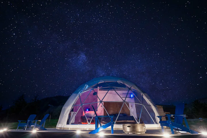Imagine a sanctuary where the night sky unfolds in an awe-inspiring tapestry, offering a celestial show unlike any other. In this tranquil haven, far removed from the hustle of daily life, rekindle your connection with the natural world. The Stargazing Geodome isn’t just a stay, it’s a journey to tranquility and awe.