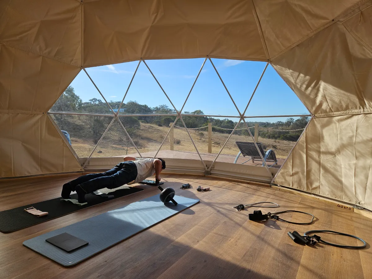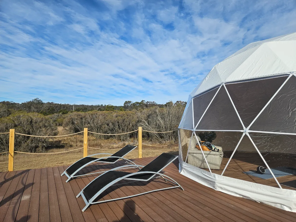 Discover your oasis amidst 100 acres of untouched native grassland and bush. Unwind in the container house and dome tent retreat from city stress.Step into a funky designer haven, fully insulated and sunlit. Relax by the pot belly fireplace and be embraced by nature’s beauty.